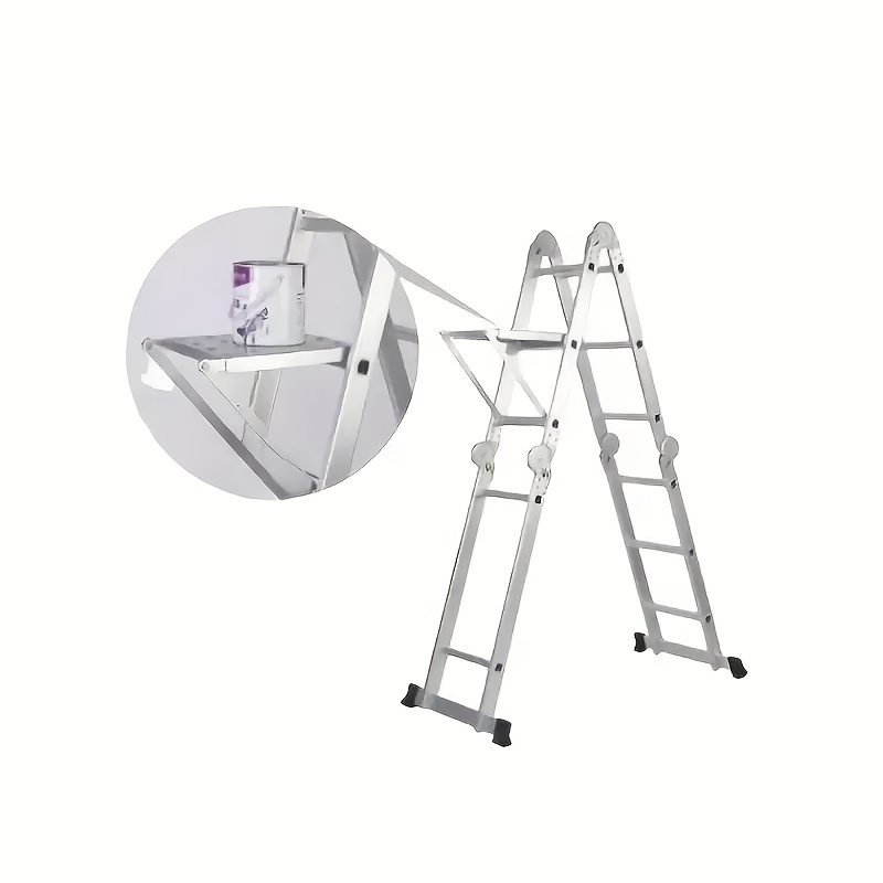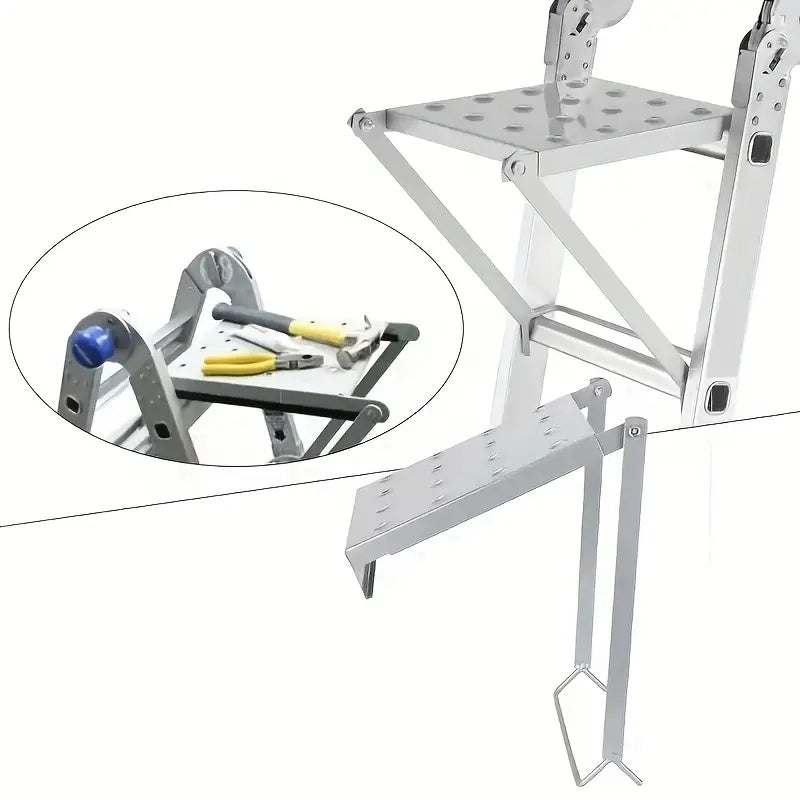 1 Heavy-Duty 400-Pound Load-Bearing Platform with Extendable Work Station System and Tool Tray, Silvery, Suitable for Large Ladders, Non-Slip Design