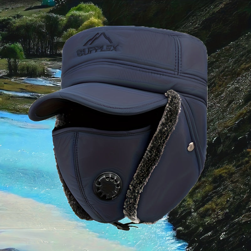 1 Men's Winter Warm Flat Top Hat, Middle-aged and Elderly Balaclava Cap for Outdoor Cycling Ski Hats with Adjustable Buckle Windproof Ear Protection, Winter Cap for Men, Ski Mask, Winter Cycling Headband, Winter Hat, Snow Gea