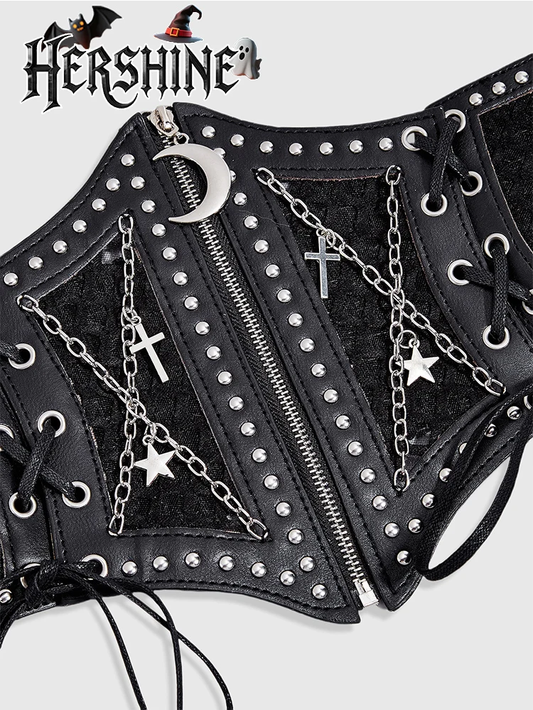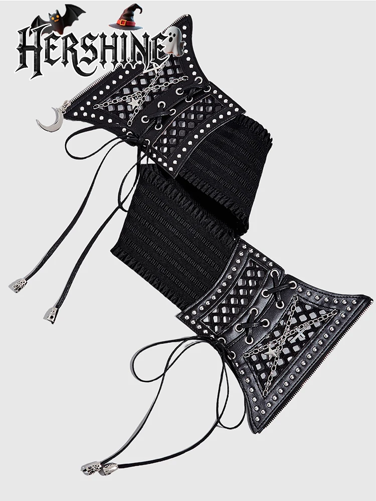 1-piece set of women's black hollow mesh cross chain cross metal accessories decorated with dark punk style waist waistband