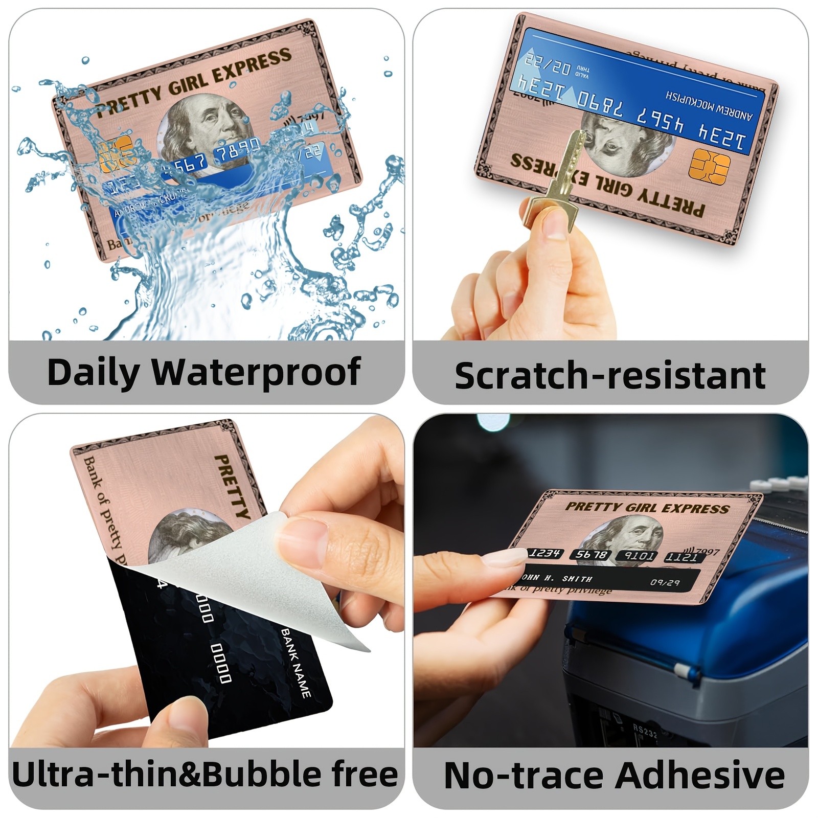 1 set of 4 thickened frosted art and interesting creative illustrations credit card stickers suitable for credit cards, bank cards, debit cards, bus cards, removable self-adhesive decorative card stickers, scratch-resistant,