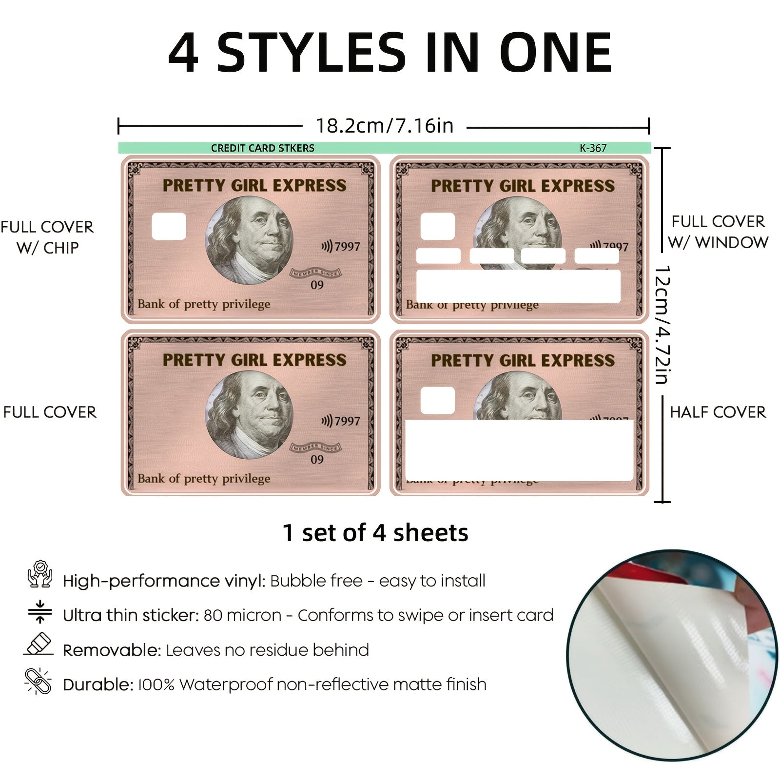 1 Set of 4 Thickened Frosted Artistic Fun Creative Illustration Credit Card Stickers, Suitable for Credit Cards, Bank Cards, Debit Cards, Bus Cards, Removable Self-Adhesive Decorative Card Stickers, Scratch-Resistant,, Decora