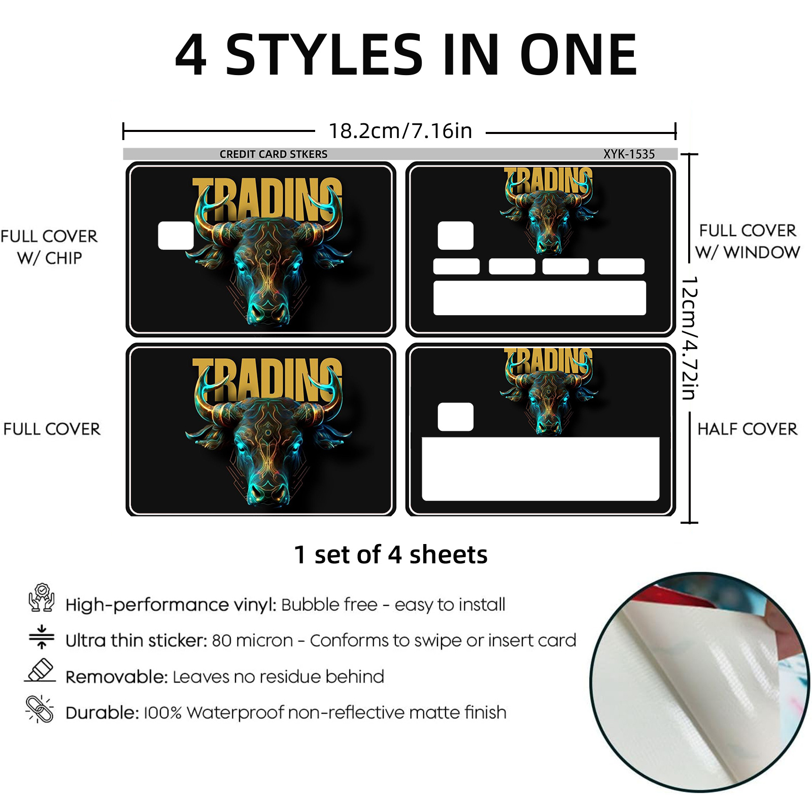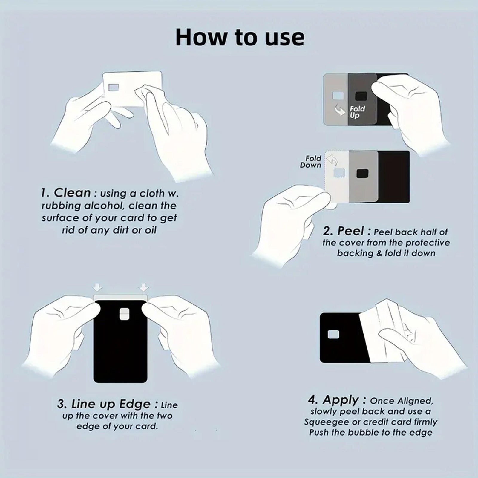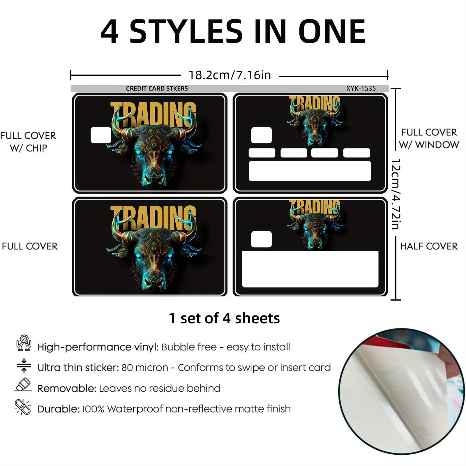 1 set of 4 thickened frosted credit card decorative stickers. Suitable for credit cards, bank cards, bus cards, removable self-adhesive decorative card stickers