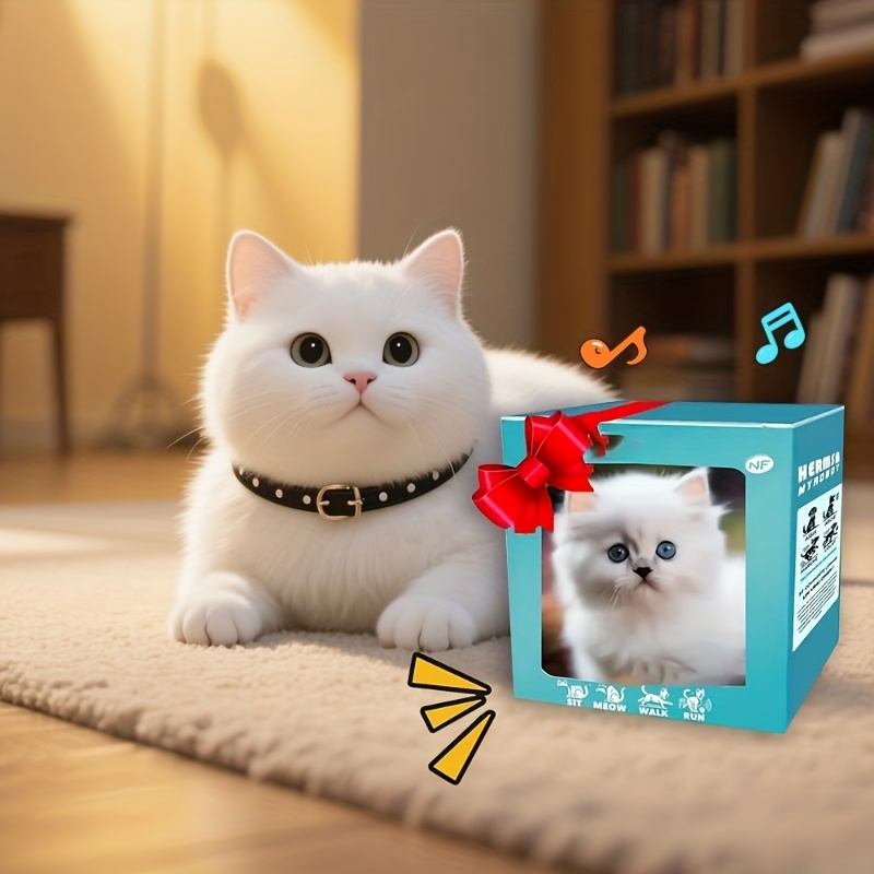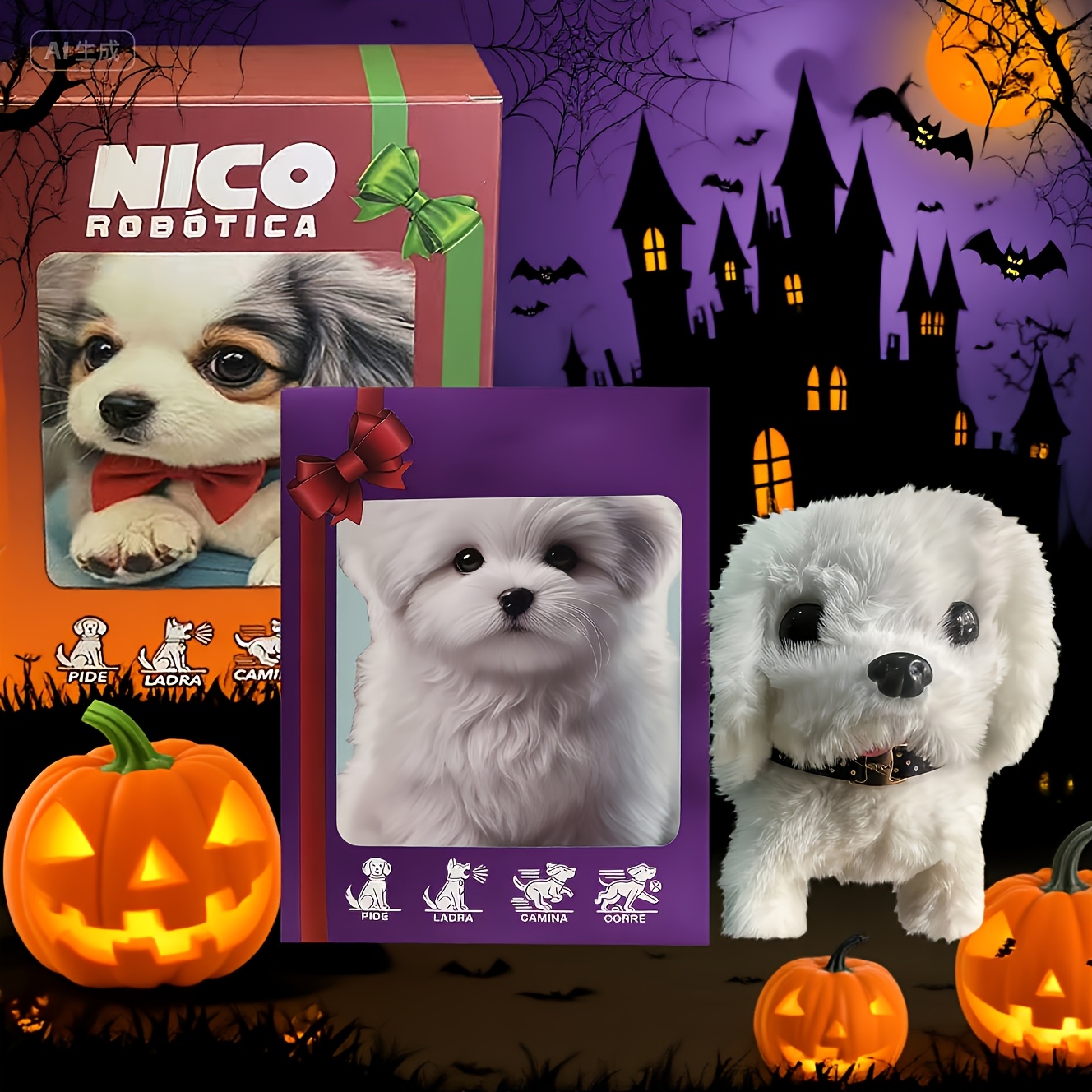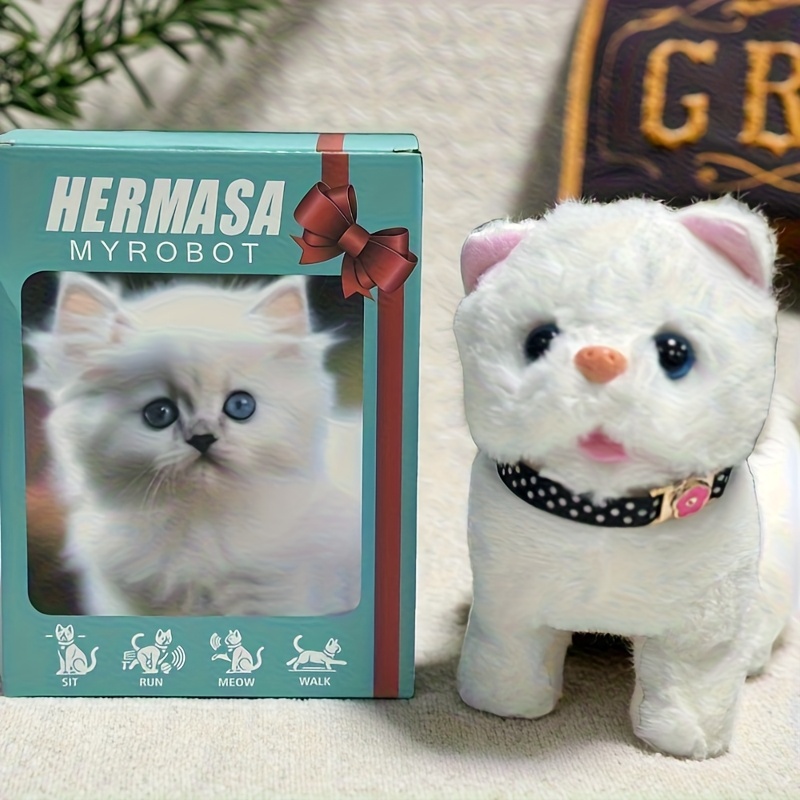 Realistic Robot Dog - Interactive Electronic Pet with Soft Fluffy Hair, 6-inch Compact Robot Puppy, White & Multi-Color Plush Doll for Adults & Collectors, Battery-Free Operation (No Included),